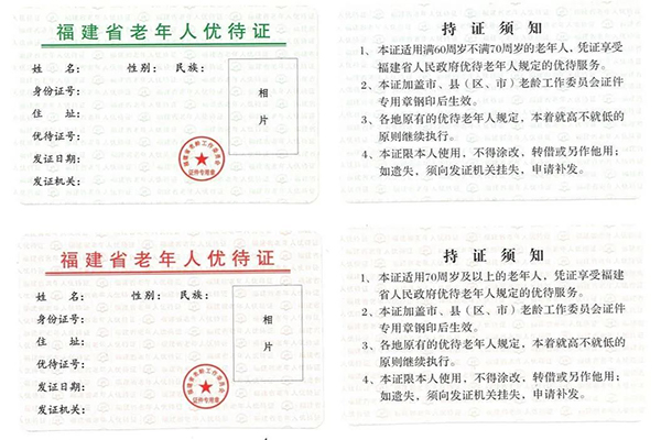 《福建省老年人优待证》